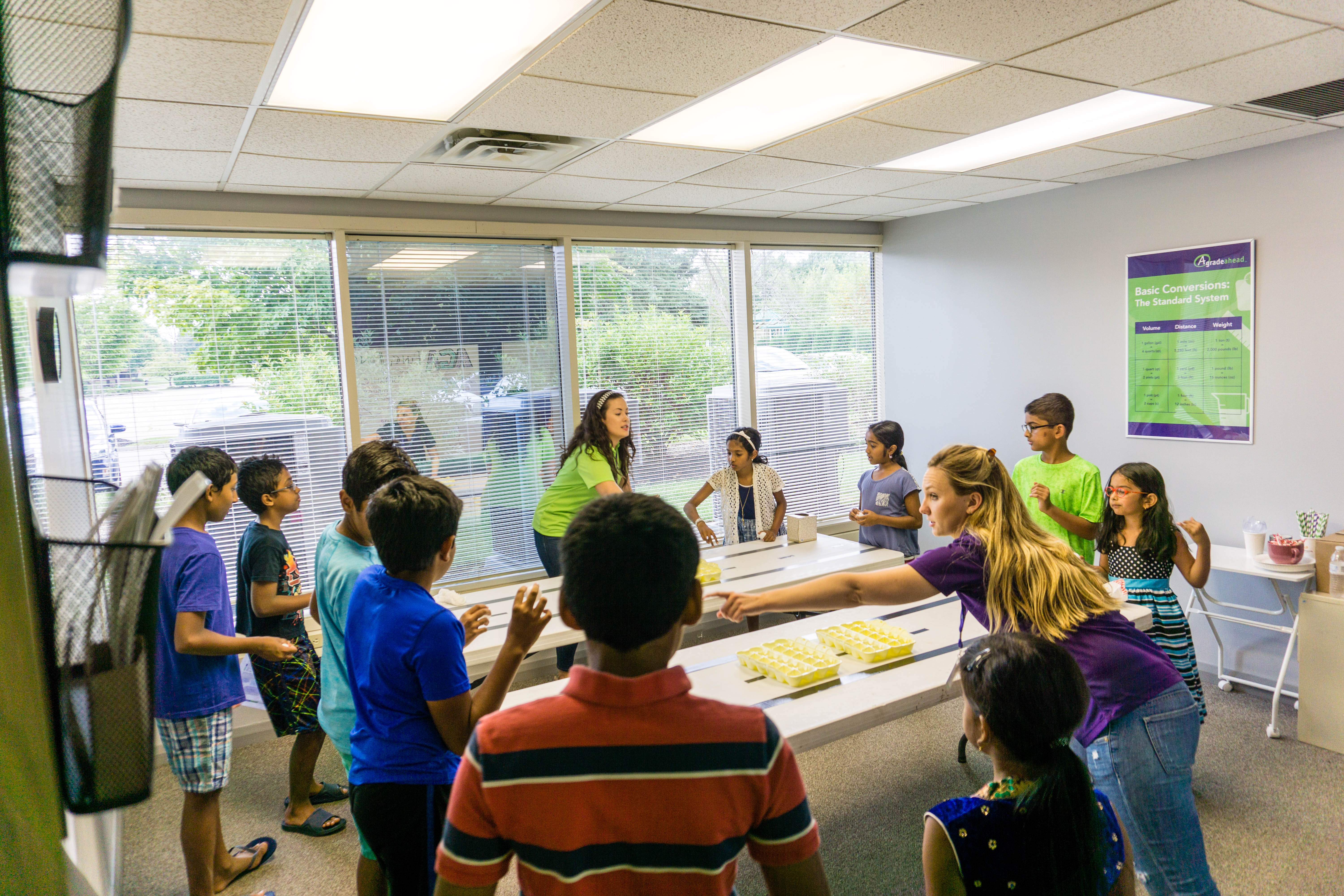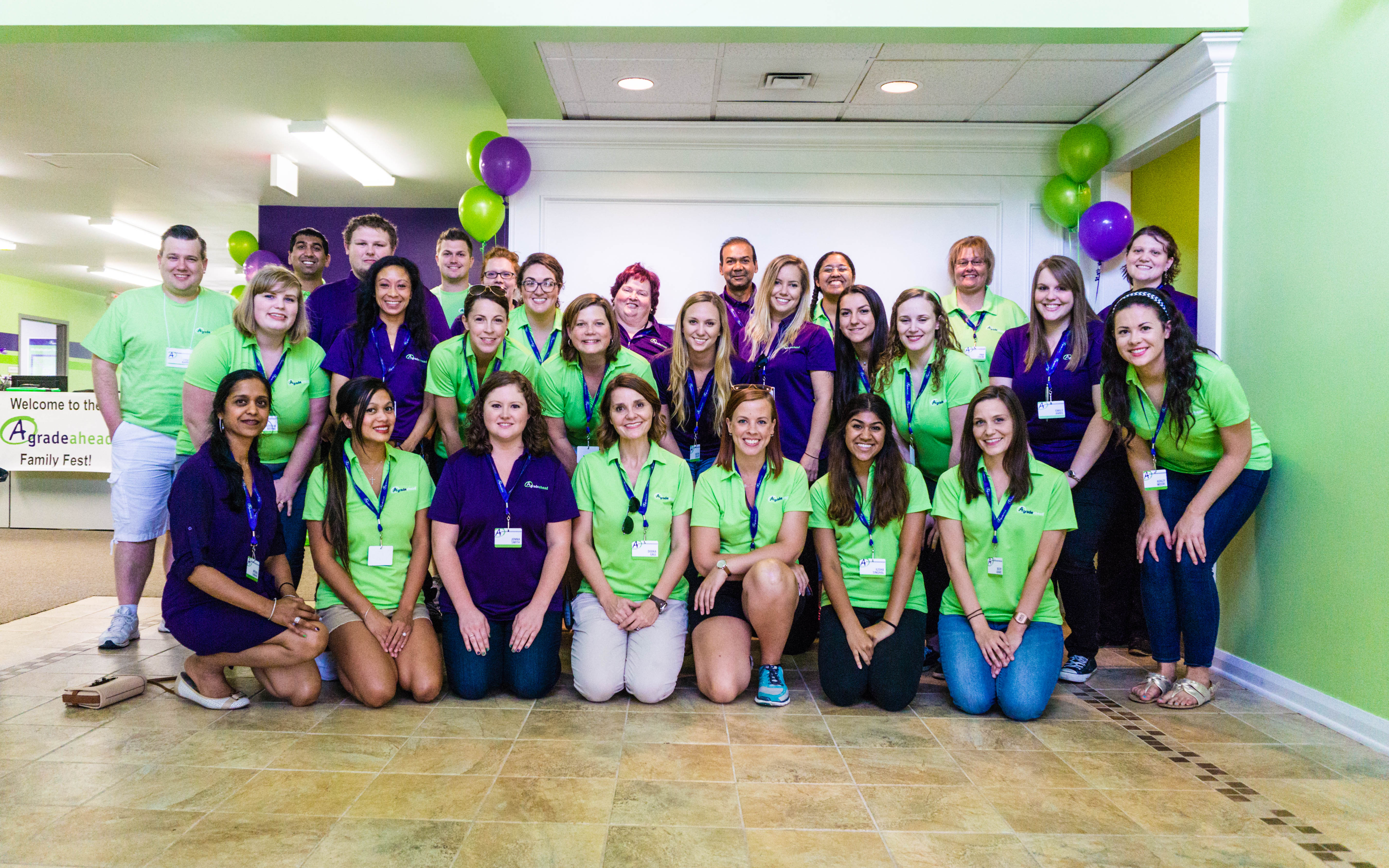 The event kicked off with a ribbon cutting ceremony outside the Dublin Enrichment Academy’s doors. City officials were invited to take part in the anticipated revealing of the new colors and logos of purple and green. Although the rebranding had officially taken place on Monday, September 5th, and glimpses of the change had been shared early on to make an easy transition for everyone, this marked occasion held a special place for the owners, employees and all those who’d put hours and hours into making the transformation a successful one. (For more information on the rebranding, read “Mathwizard is Now A Grade Ahead.”)